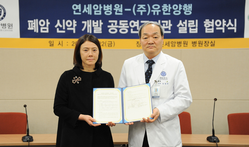 연세암병원과 유한양행 중앙연구소가 폐암 치료를 위한 신약 개발을 위해 협력한다.
