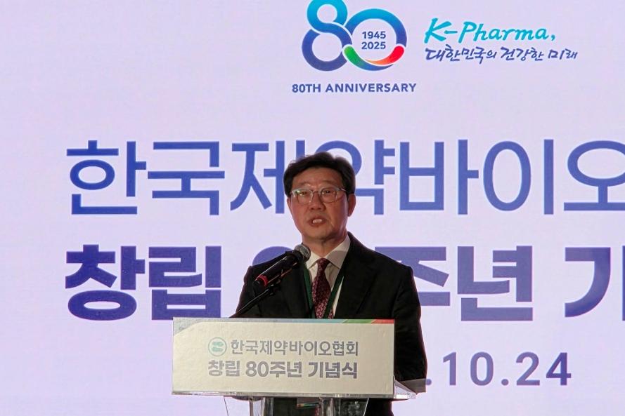 윤웅섭 이사장은 환영사를 통해 "오늘 행사는 단순히 협회의 역사를 기념하는 것을 넘어 대한민국 제약바이오산업의 80년 발자취를 돌아보고, 미래 100년을 향한 결의를 다지는 의미 깊은 자리다"라고 강조했다.