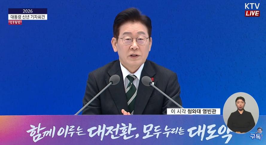 21일 신년 기자회견을 진행하는 이재명 대통령 모습. 사진=KTV 실시간 생중계 갈무리.