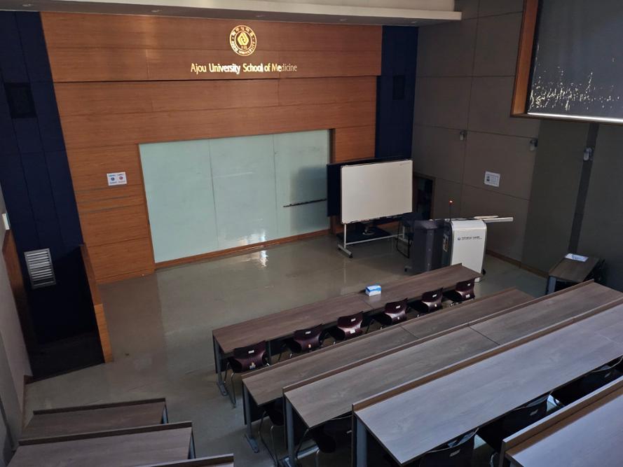 40명 정원으로 수업을 들을 수 있게 세팅된 기존 아주의대 강의실 모습.