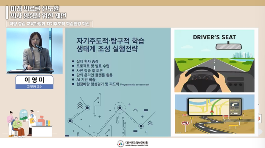 이날 발표에서 울산의대 임영석 교수와 고려의대 이영미 교수는 단편적 지식 전달 중심의 교육에서 벗어나, 통합적 사고와 자기주도적 학습을 핵심 축으로 의학교육 전반을 개편해야 한다고 제언했다.