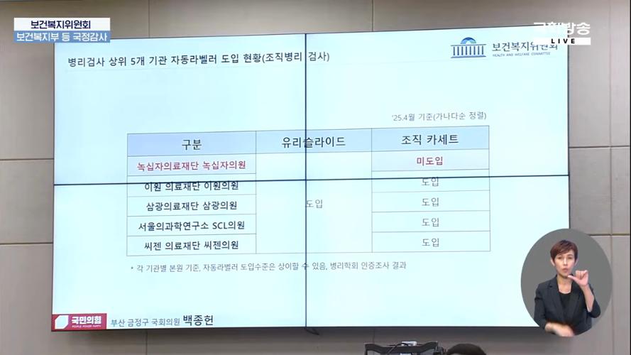 15일 열린 국회 보건복지위원회 국정감사에서 국민의힘 백종헌 의원은 "환자 안전의 검체 식별 추적 시스템이 붕괴됐다. 이는 진단의 신뢰, 치료 결정을 무너뜨렸다"며 "이는 절차상의 실수가 아니라 환자의 인생을 바꾸는 치명적 잘못"이라고 질타했다.