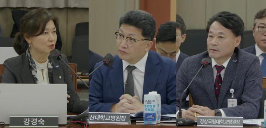이에 강 의원은 전공의 공백이 적자 경영에 영향을 미쳤는지 질의했다. 그는 "대규모 적자 원인이 전공의 공백과 직접적인 상관이 있다고 보는지 궁금하다. 또 병원 스스로 해결이 가능한 문제인지 혹은 정부 지원이 불가피한 것인지, 누적 손실액에 대한 해법을 말해달라"고 했다.
