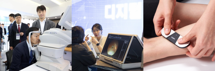 (가운데) 심혈관질환·안질환 예측 AI 소프트웨어 '닥터눈', (오른쪽) AI 실명진단 보조 솔루션 '위스키', 심전도 측정 의료기기 '하티브'