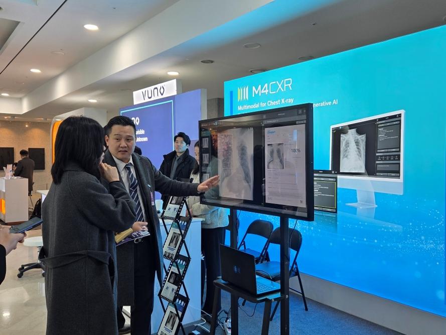 이번 전시에서 소개된 'M4CXR'은 흉부 엑스레이 영상을 분석해 정상 소견과 흉부 질환 관련 41개 이상의 소견에 대한 판독 소견서 초안을 자동 생성하는 생성형 AI 기반 의료기기다. M4CXR은 수 초 내 판독 초안을 제공함으로써 의료진의 업무 부담을 줄이고 판독 효율성을 높일 수 있다.
