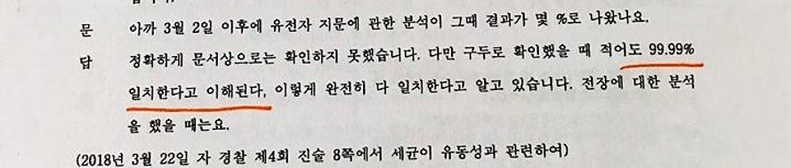 유전자 지문 검사, 99.9% 일치 주장할 수 없고 서로 다르다는 전문가 진술