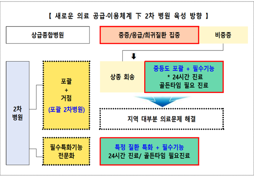 보건복지부는 상급종합병원 구조전환 사업이 안정적으로 시행된 이후 다음 정책으로 병원급 의료기관인 2차 의료기관에 대한 사업을 2025년 시행했다.