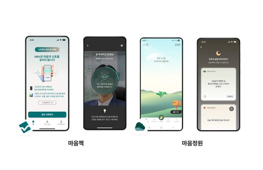 종합 정신건강 검진 서비스 '마음첵'과 정서 관리 서비스 '마음정원' (사진=하이)