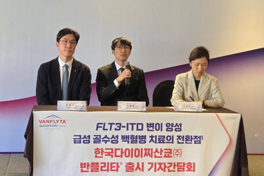 한국다이이찌산쿄는 14일 더 플라자호텔 서울 메이플홀에서 급성 골수성 백혈병 표적치료제 반플리타(성분명 퀴자티닙 염산염)의 국내 출시를 기념한 기자간담회를 개최했다.