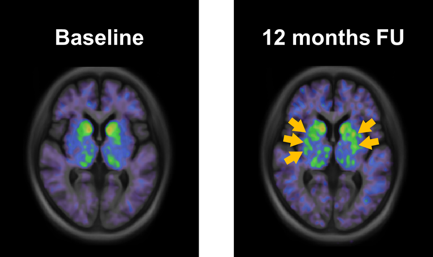 이식 1년 후 시행한 도파민 뇌영상(FP-CIT-PET)에서 이식된 도파민 신경세포 생착을 시사하는 신호 증가 소견이 관찰됐으며, 이는 저용량군보다 고용량군에서 두드러졌다.