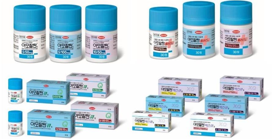 아모잘탄패밀리는 지난 2009년 국내 개량신약 1호로 출시된 ▲안지오텐신수용체차단제(ARB)와 칼슘길항제(CCB) 2제 복합제인 아모잘탄(암로디핀+로사르탄)을 비롯해 ▲아모잘탄에 이뇨제 성분인 클로르탈리돈을 결합한 3제 복합제 아모잘탄플러스 ▲아모잘탄에 이상지질혈증 치료 성분인 로수바스타틴을 합친 3제 복합신약 아모잘탄큐 ▲아모잘탄과 이상지질혈증치료 2제 복합제 로수젯(로수바스타틴+에제티미브)을 결합한 4제 복합제 아모잘탄엑스큐 등으로 구성돼 있다.