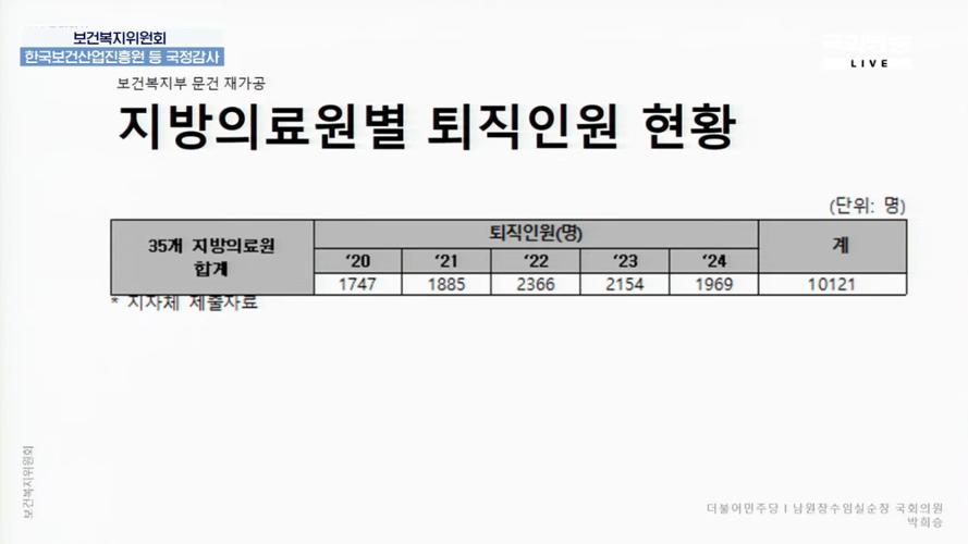 지방의료원별 퇴직인원 현황. 사진=국회방송
