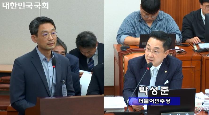 교육부 김도완 감사관, 박성준 더불어민주당 의원. 사진=인터넷의사중계시스템 영상 갈무리