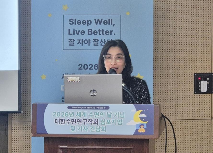 대한수면연구학회 김지현 부회장이 6일 열린 기자간담회에서 발표하고 있다.