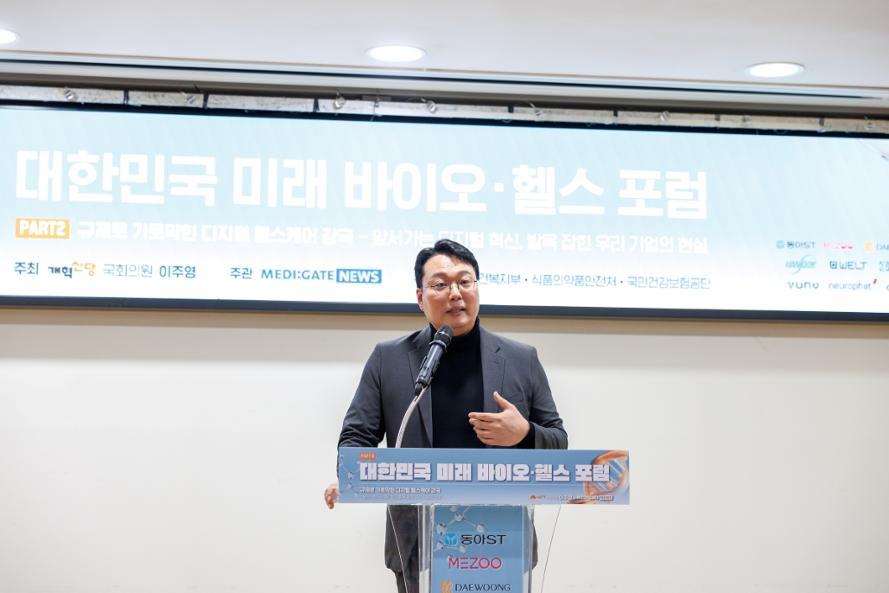 이 대표는 이날 국회의원회관에서 개혁신당 이주영 의원실 주최, 메디게이트뉴스 주관으로 열린 ‘대한민국 미래 바이오∙헬스 포럼’에서 “우리나라는 우수한 임상 환경 속에서 의공학적 시도들이 더 꽃필 수 있음에도 규제에 발목이 잡혀있다”며 이같이 말했다.