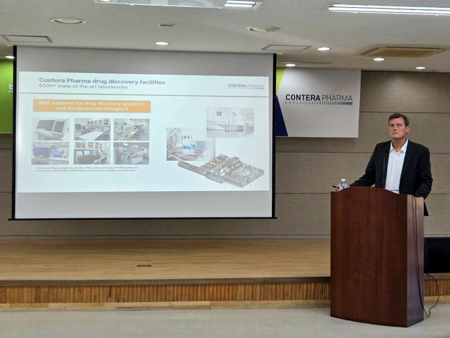 토마스 세이거 대표는 발표에서 콘테라파마의 핵심 영역으로 파킨슨병과 RNA 치료 플랫폼 두 가지를 꼽았다.