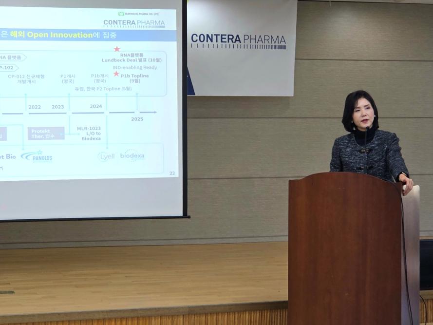 이날 콘테라파마 토마스 세이거 대표는 파킨슨병 치료제 CP-012와 RNA 플랫폼의 경쟁력 등을 설명했고, 부광약품 안미정 회장은 회사의 신약개발 전략으로 선택·집중 전략과 국내·외 오픈이노베이션 로드맵을 제시했다.
