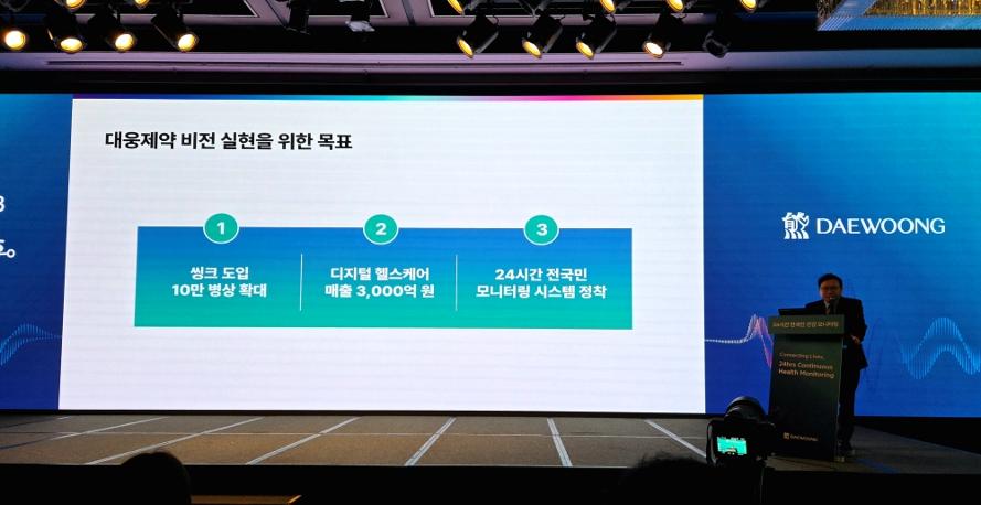 이어 그는 "대웅제약은 대한민국 디지털 헬스케어 선도 기업으로 압도적 성과를 증명하겠다"며, 씽크 도입 10만 병상 확대 ▲디지털 헬스케어 매출 3000억원 ▲24시간 전국민 모니터링 시스템 정착 등 목표를 공개했다.