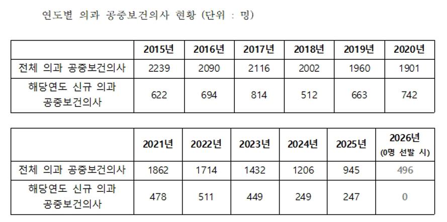 [메디게이트뉴스 박민식 기자] 올해 신규 의과 공중보건의사(공보의)가 0명이 현실화할 경우 전국 400개 읍∙면이 ‘무의촌’으로 전락할 수 있다는 지적이 제기됐다.