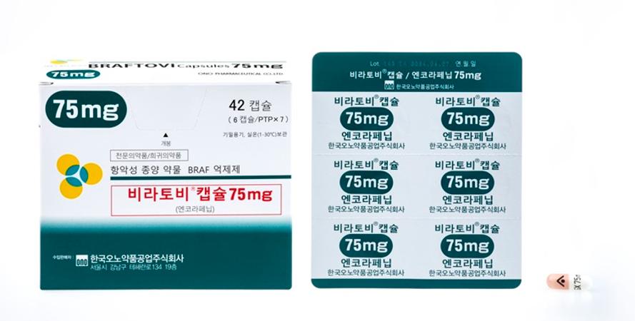 한국오노약품공업이 9일 BRAF 저해제 비라토비(Braftovi, 성분명 엔코라페닙)가 BRAF 변이가 확인된 전이성 직결장암(mCRC) 환자 치료로 세툭시맙 및 mFOLFOX와의 병용요법으로 식품의약품안전처의 적응증 추가 승인을 받았다고 13일 밝혔다.