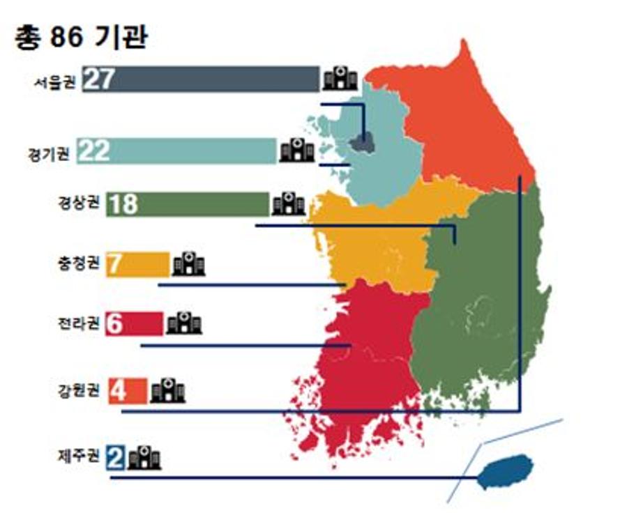 아울러 유방암·위암 모두 1등급을 받은 기관은 상급종합병원 42기관과 종합병원 44기관인 총 86기관으로 전국 모든 권역에 분포하고 있고 제주권역에도 2기관 있는 것으로 나타났다.