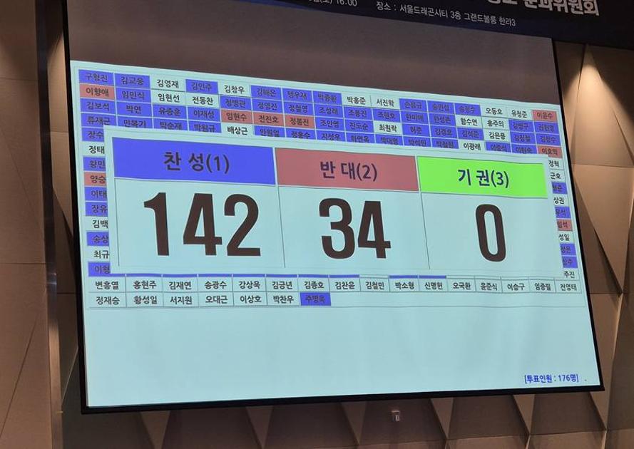 이날 총회에 상정된 관련 안건은 총 2건이었다. 먼저 정관에 ‘만 40세 이하’를 청년회원으로 정의하고, 각 시도지부 고정 대의원 3명 중 1명을 청년회원으로 의무 선출(대전협 등이 추천 가능)하도록 하는 안건은 재석 176명 중 찬성 142표, 반대 34표로 가결됐다.