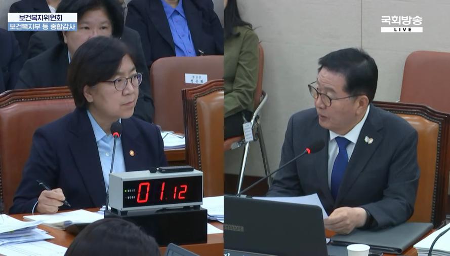(왼쪽부터) 보건복지부 정은경 장관, 더불어민주당 장종태 의원. 사진=국회TV