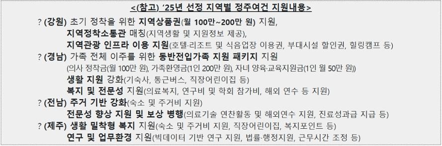 구체적인 혜택은 지자체 자원을 활용한 주거·교통, 연수, 자녀 교육, 여가·문화 지원 등이다.