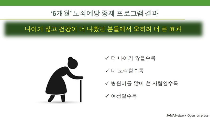 노쇠예방사업은 상태가 더 나쁜 노인들에게서 더 큰 효과를 보였다. 자료=장일영 교수