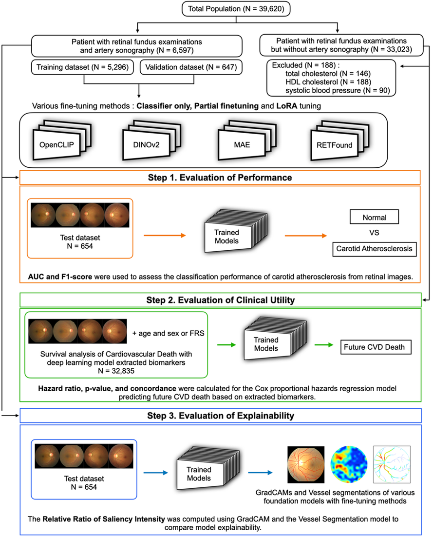 안저사진을 활용해 경동맥경화를 조기에 발견할 수 있는 기회검진(opportunistic screening) 인공지능 모델을 대규모 데이터로 사전 학습된 파운데이션 모델을 활용해 개발했다.