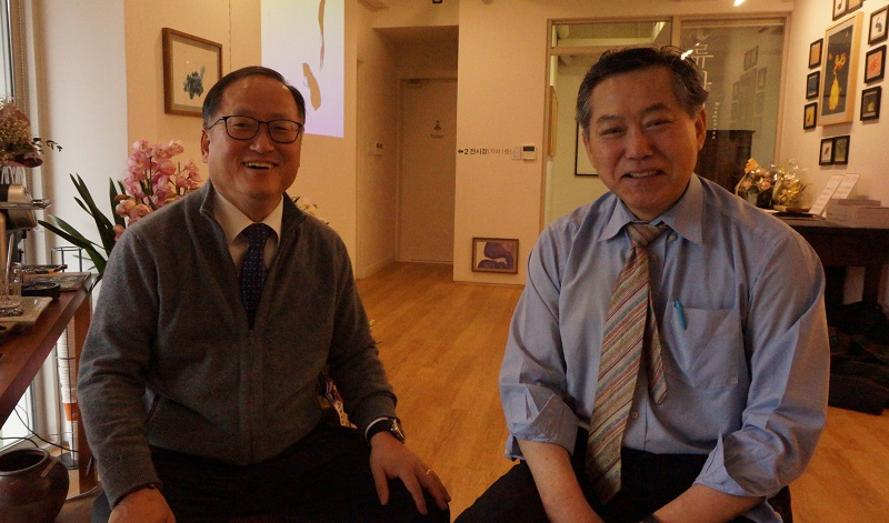 그는 식약처의 식의약 정책자문관을 맡고 있는 연대 보건과학대 의공학부 윤영로 교수였다. 나중에 보다 자세한 얘기를 듣기 위해 당시 행사가 끝나고 인터뷰에 앞서 연락처를 교환한 상태였는데, 며칠이 채 지나지 않아 우연히 김한겸 교수의 전시회에서 만나게 돼 미니 의료기기 토크콘서트를 가졌다. 윤 교수와 김 교수는 식약처의 최고자문의결기관인 안전위원회에서 활동한 인연이 있다.
