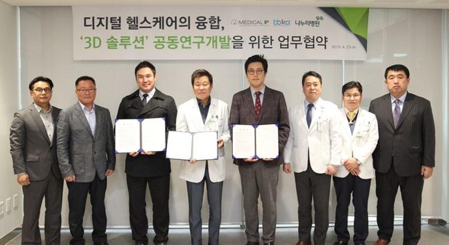 메디컬아이피는 나누리병원과의 이번 업무 협약을 통해 국내는 물론 해외환자의 진단과 치료 연계 프로젝트와 근· 골격계에 대한 딥러닝을 공동 연구하고 임상 3D 데이터 축적과 교육트레이닝 프로그램도 공동 개발하기로 했다. 또 의료서비스 연구개발기업인 투비코의 블록체인 기술을 활용해 의료정보 플랫폼 구축과 융합시스템 개발에도 참여할 예정이다.