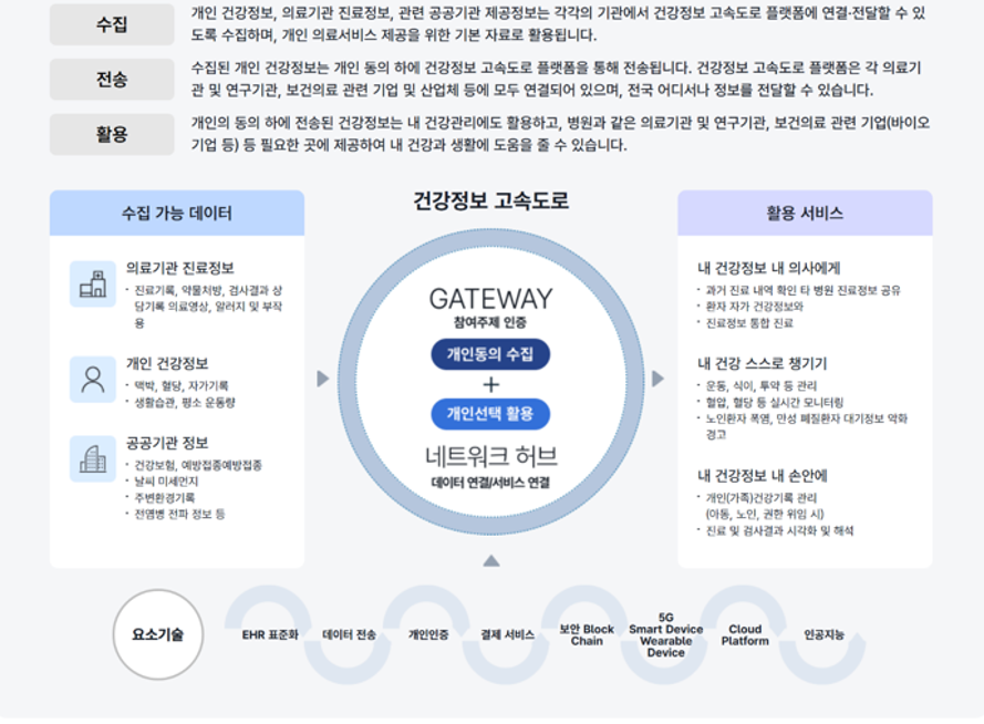 마이헬스웨이란 정부가 운영중인 '건강정보 고속도로 사업'으로 병원 진료, 검사, 투약 기록을 통합해 조회할 수 있는 국가 헬스 데이터 플랫폼이다. 현재 1354개 의료기관 (상급종합병원 전체, 종합병원 120곳, 병원 15곳, 의원 1172곳)이 참여 중이다.