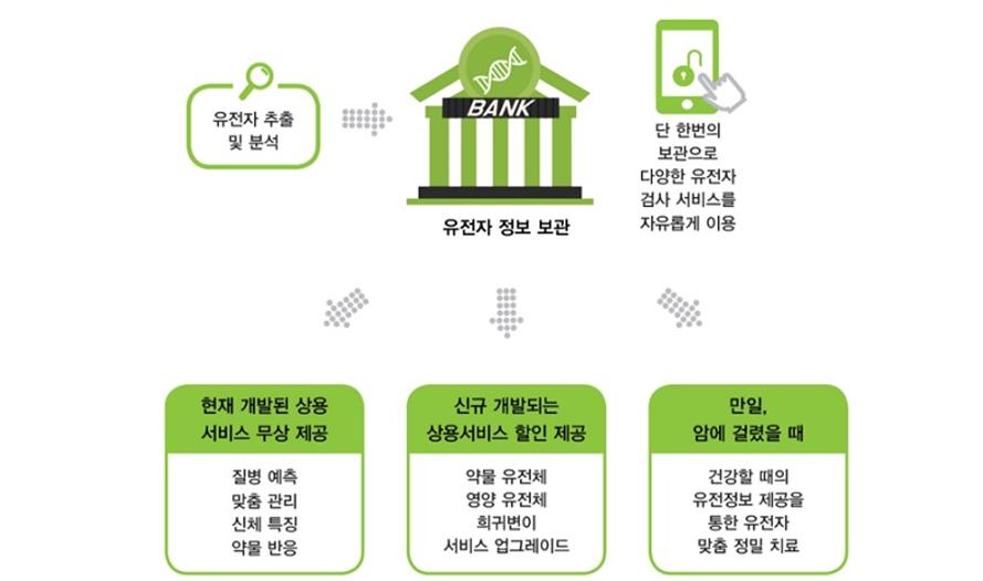 진뱅킹에 유전자를 저장해두면 이를 활용해 본인의 유전적 질병 예측이나 유전자 기반의 맞춤 건강 관리 등 다양한 유전자 검사 서비스를 받을 수 있을 것으로 보인다.