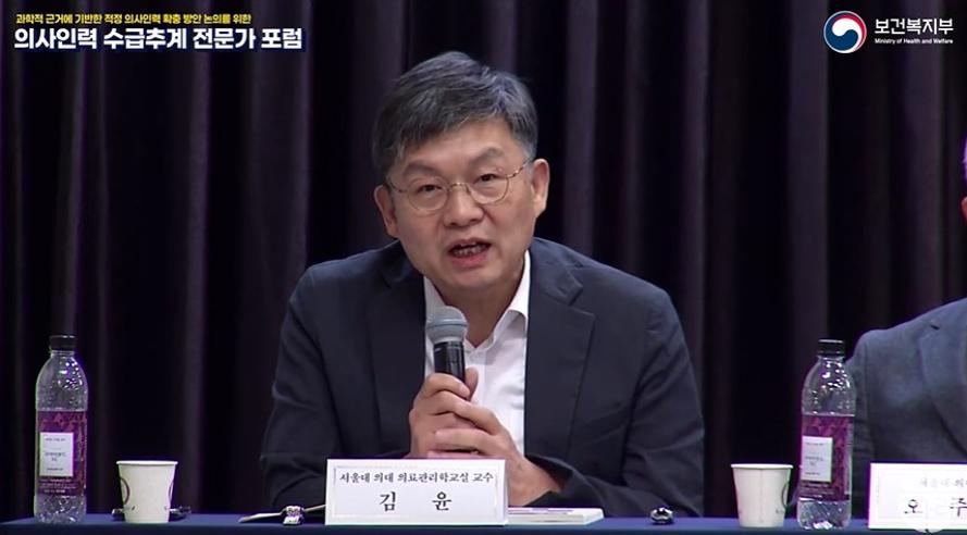 서울의대 의료관리학교실 김윤 교수는 앞서 6월 27일 보건복지부가 개최한 '과학적 근거에 기반한 적정 의사인력 확충 방안 논의를 위한 의사인력 수급추계 전문가 포럼'에서 토론자로 나서 우리나라 의사 수 부족을 설명하고, 의대정원 증원 및 의대 신설을 주장했다.