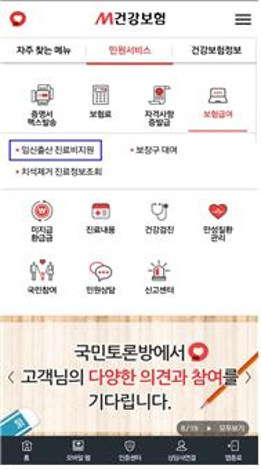 [메디게이트뉴스 윤영채 기자] 국민건강보험공단은 21일부터 홈페이지에서 제공되던 임신출산진료비 지원신청, 국민토론방, 우수고객제안 안내를 공단 모바일 앱인 ’M건강보험‘에서도 제공한다고 밝혔다.