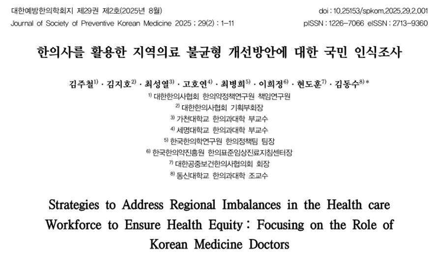 사진=한의사를 활용한 지역의료 불균형 개선방안에 대한 국민 인식조사, 대한예방한의학회지.