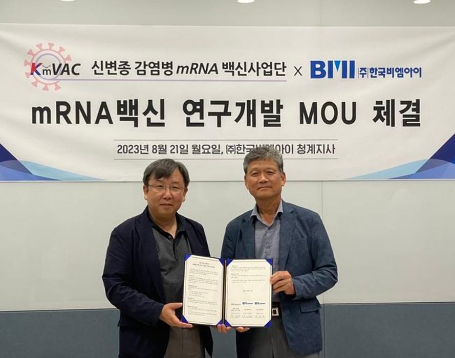 신변종 감염병 mRNA 백신사업단과 한국비엠아이는 국내 mRNA 백신의 연구 개발을 위해 상호협력하는 업무협약(MOU)을 체결했다고 22일 밝혔다.