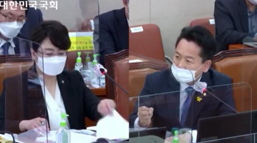 사진 = 왼쪽부터 김선민 심평원장, 고영인 국회의원 국회의사중계시스템 갈무리.
