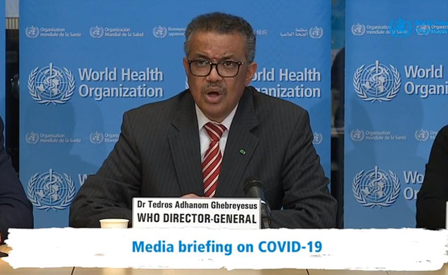 WHO 테드로스 아드하놈 게브레예수스 사무총장. 사진=WHO 브리핑 영상 캡처