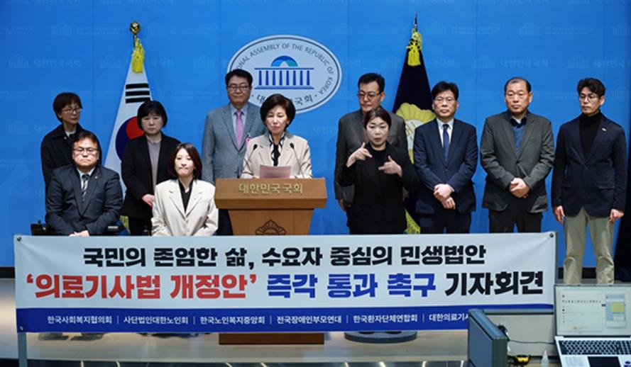 그는 "장애인, 노인, 사회복지 등 보건의료 전문가 단체가 공통된 목소리를 내고 있다. 바로 병원 문턱을 넘지 못하는 국민을 위해 이제는 집으로 찾아가는 보건의료가 돼야 한다는 것"이라며 "현재 계류 중인 의료기사법 개정안은 직역 간의 다툼이 아니다. 최근 시행된 돌봄통합지원법이 현장에서 제대로 작동하기 위해선 법 개정을 통해 가장 기초적인 민생 인프라를 구축해야 한다"고 말했다.