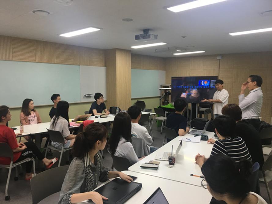 앞선 3주 수업은 메디칼아이피, 엡손코리아, 서울의대 의공학교실 등의 관련 강의가 있었다. 이날 수업은 VR을 이용한 수술 시뮬레이션을 주제로 서지컬 마인드의 김일 대표가 강의를 펼쳤다.