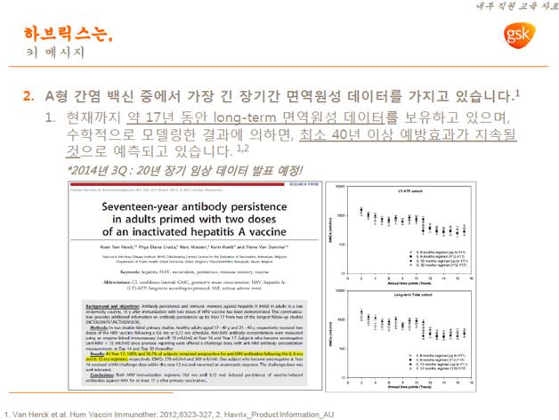 다음은 관련 약물의 임상연구 및 허가사항 설명자료.