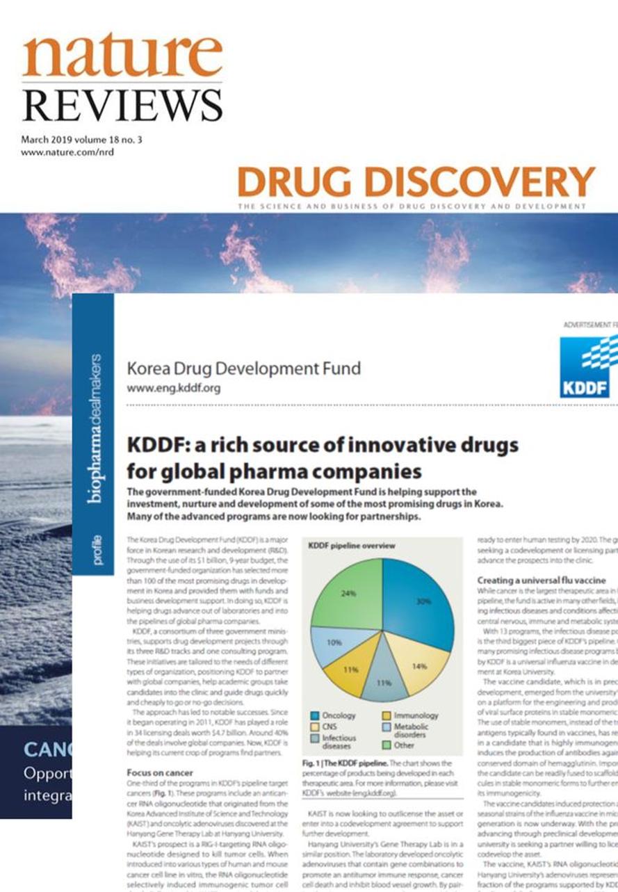 2018년 글로벌 라이센싱지원사업 중 글로벌 노출 증대의 일환으로 사업단에서 지원중인 우수과제 3개를 네이처에서 발간하는 바이오파마 딜메이커스 3월호에 소개했다.