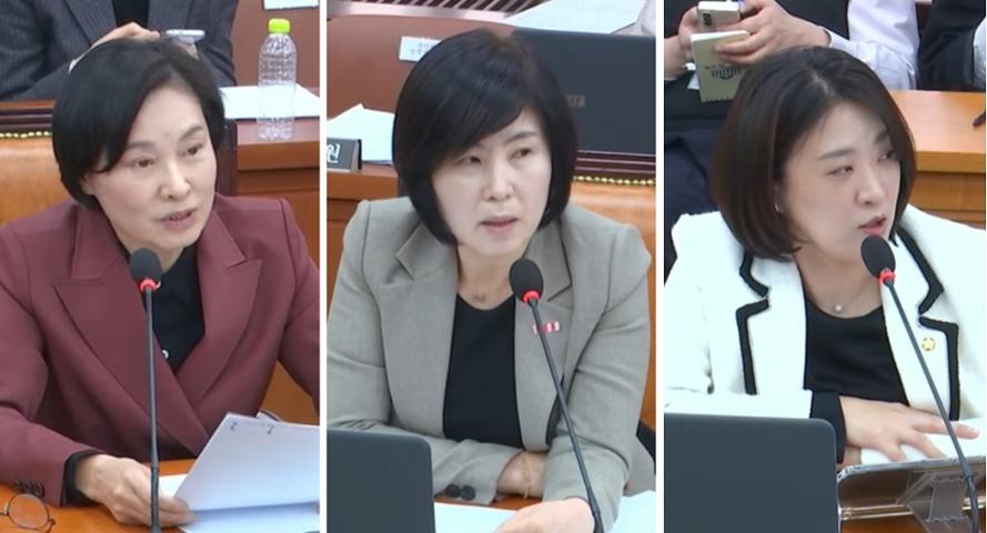 사진 왼쪽부터 국민의힘 서명옥, 김미애, 최보윤 의원 모습. 사진=국회방송 실시간 생중계 갈무리