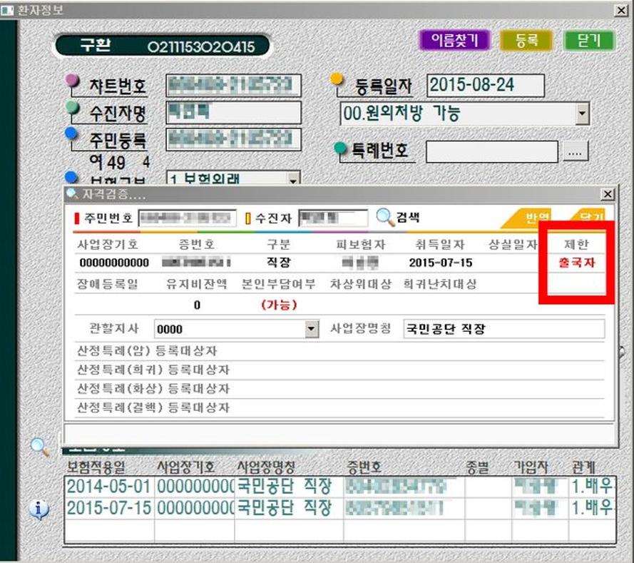 김 고문은 출입국 당일진료에 대해 요양급여비용 환수예정통보서가 발송되는 사례가 적지 않자 ‘출입국관리사무소로부터 받은 출입국 정보에 출입국 시각이 포함되지 않는지, 출입국 시각 정보를 받지만, 공단 자격DB에 입력하지 않는지 건보공단에 물었다.