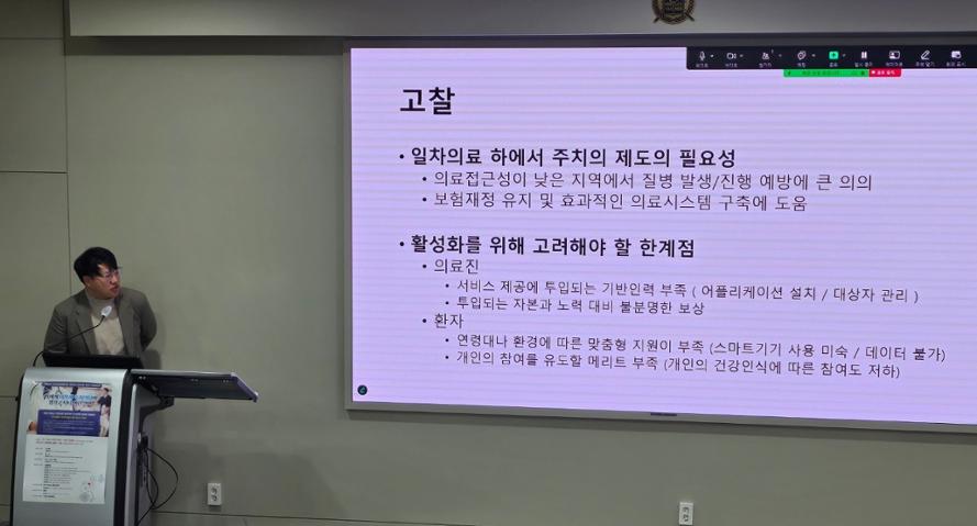 그는 "의료취약지 환자들의 참여도를 높일 수 있는 맞춤형 제도가 필요하다고 본다. 특히 스마트폰이나 디지털기기 활용이 어려운 환자들 환경을 고려한 제도 개선이 중요하다. 주치의들에게도 환자 관리에 따른 적정한 보상과 인센티브가 필요하다"고 말했다.