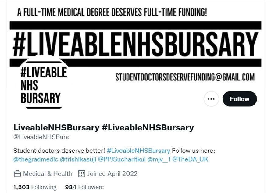 'LiveableNHSBursary' 해시태그 캠페인을 통해 영국 의대생들은 자신의 경제적 어려움을 트위터 상에서 공유하고 정부의 재정 지원을 요구하고 있다.