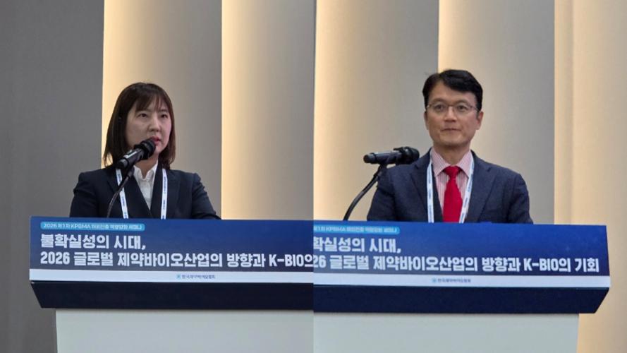 한국제약바이오협회는 28일 서울 서초구 협회 4층 강당에서 '불확실성의 시대, 2026 글로벌 제약바이오산업의 방향과 K-BIO의 기회'를 주제로 2026 제1차 KPBMA 해외진출 역량강화 세미나를 개최했다.