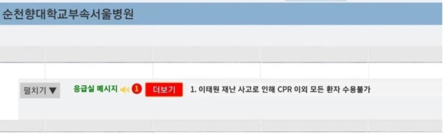 실제로 환자 이송을 위한 각 대학병원 환자관리 현황판이 '이태원 재난 사고로 인해 CPR 이외 모든 환자 수용이 불가하다'는 병원들의 메시지로 도배됐다는 후문이다.